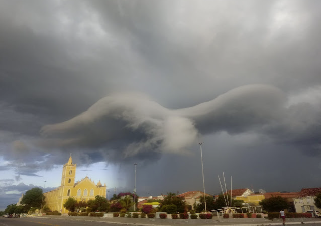 Uma nuvem em um formato diferente foi registrada no último de 04 de abril na Campo Grande, interior do Rio Grande do Norte. Muitas pessoas da região ficaram admiradas e identificaram a forma como semelhante a de um pássaro.